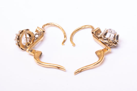 Dormeuses Anciennes Fleur Saphir Blanc Bicolore 18K