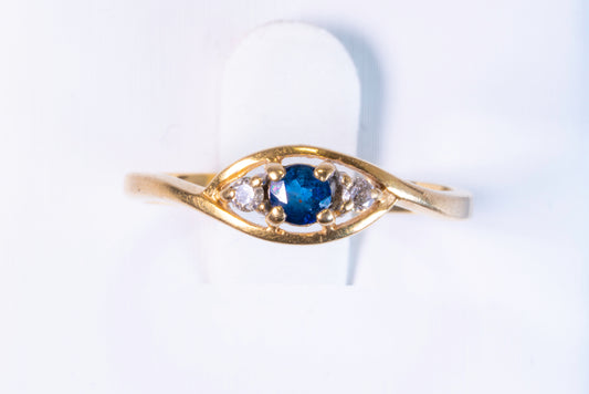 Bague Saphir Ovale et Diamants en Or Jaune 18K