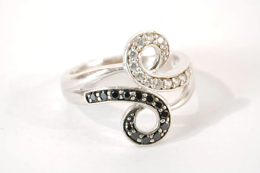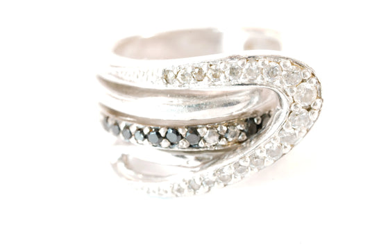 Bague motif avec pierres de Zirconium blanches et noires