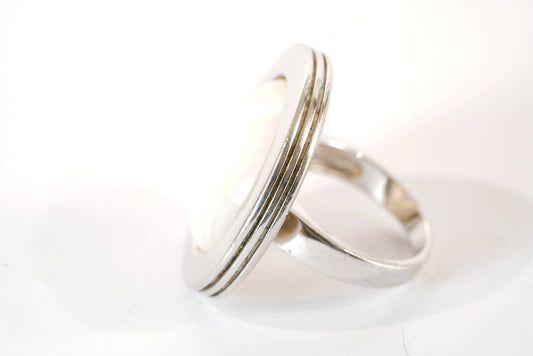 Bague ronde avec pierre de Nacre blanche