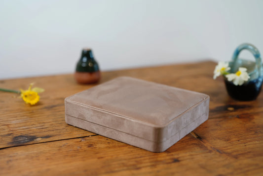 Boîte à Colliers aspect suédine couleur taupe
