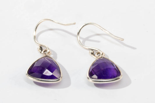 Boucles d'oreilles dormeuses en Argent avec pierres Amethyste en facettes